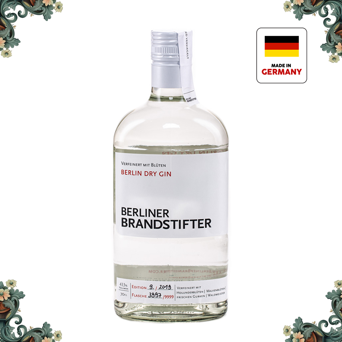 Our nationally and internationally award-winning Berlin Dry Gin is an exceptionally soft, floral and fresh gin celebrated for its taste and design. Its distinct character comes out to play with the help of elderflowers, mallow blossoms, woodruff and fresh cucumbers. The botanicals are cultivated regionally as well as hand-picked and processed at the highest quality standards. ABV. 43.3% vol.